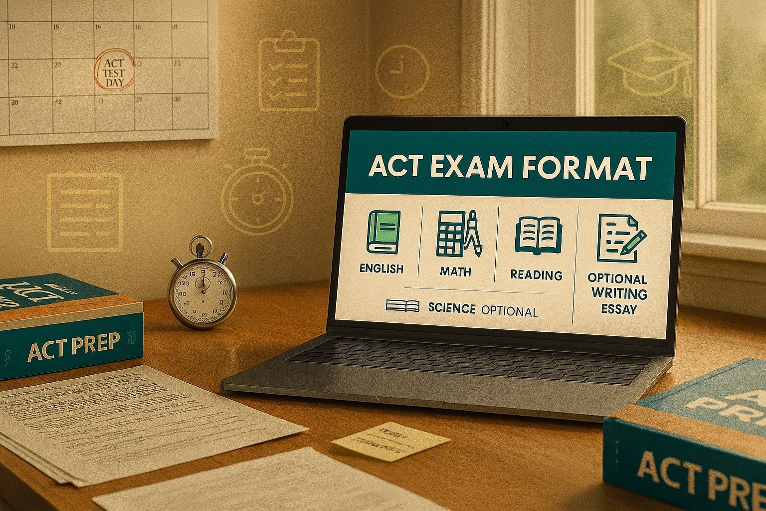 The ACT is a standardized test with four main sections (English, Math, Reading, Science) and an optional Writing section. Each section is timed, so pacing is critical.